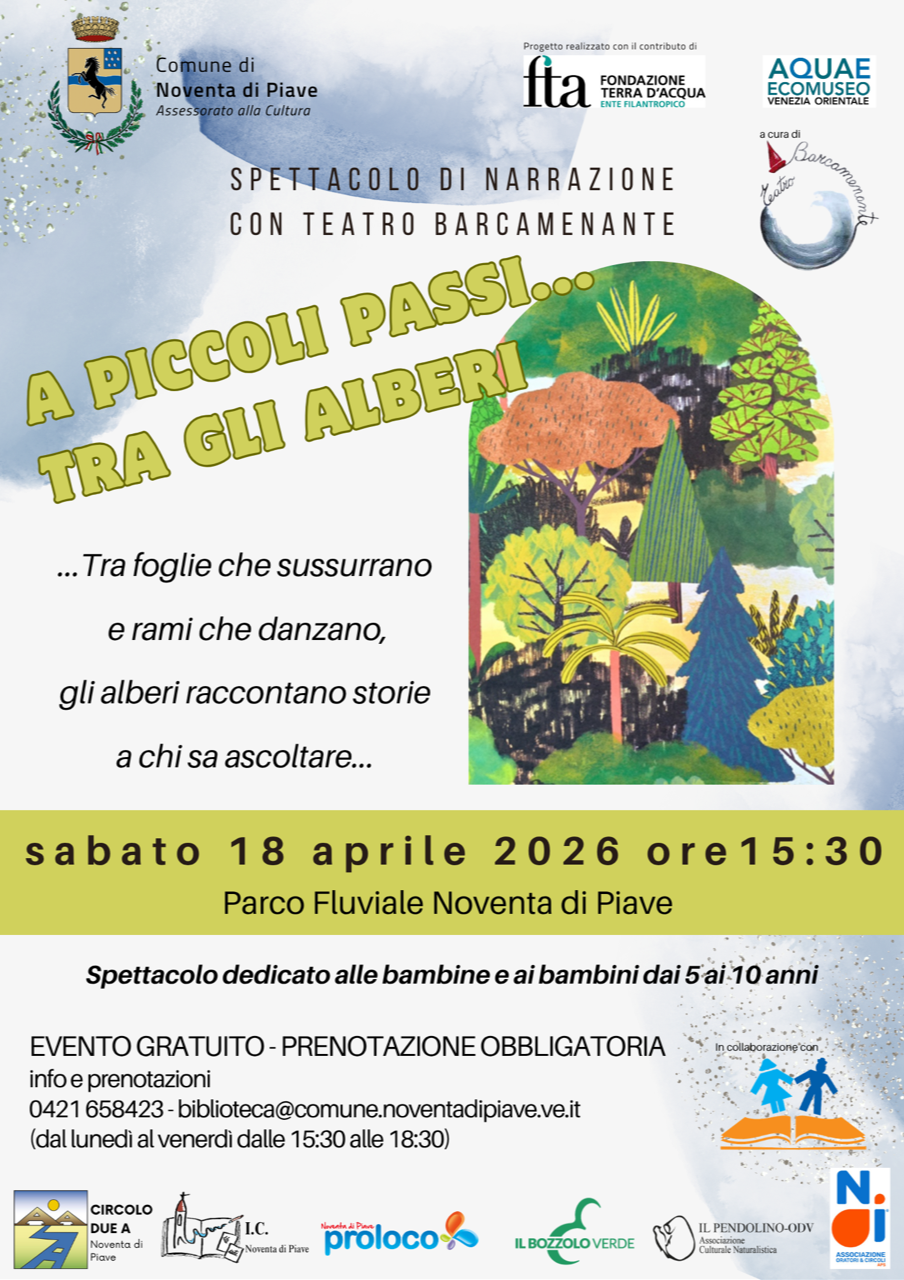 Attraverso una serie di fiabe raccontate e animate dagli attori in forma itinerante all’interno del Parco fluviale di Noventa di Piave, i bambini vivranno un’esperienza immersiva fatta di storie, emozioni e scoperta.