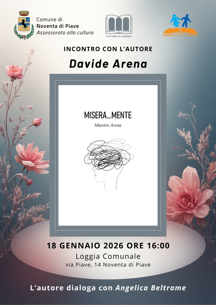 Nella suggestiva cornice della Loggia Comunale si terrà un incontro letterario per la presentazione del libro “MISERA…MENTE” di Davide Arena “una raccolta di emozioni e sentimenti che governano il nostro vissuto, tramutato in parole che diventano inchiostro scritto e che riempiono spazi vuoti…”