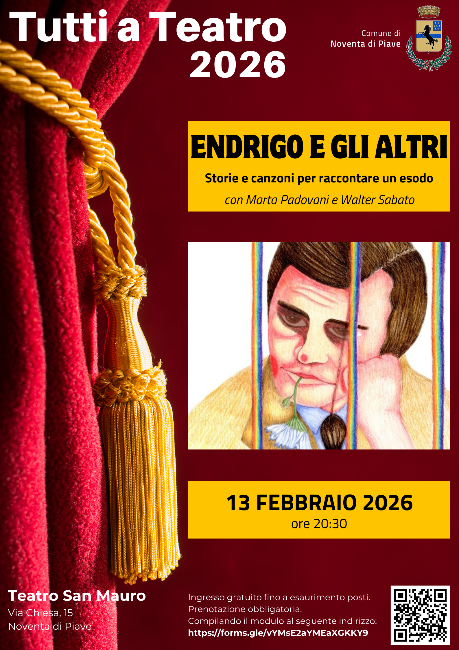 Lo spettacolo “Endrigo e gli altri”, messo in scena da Marta Padovani e Walter Sabato e inserito nella rassegna TUTTI A TEATRO 2026, nasce come momento di riflessione in occasione della Giornata del Ricordo.