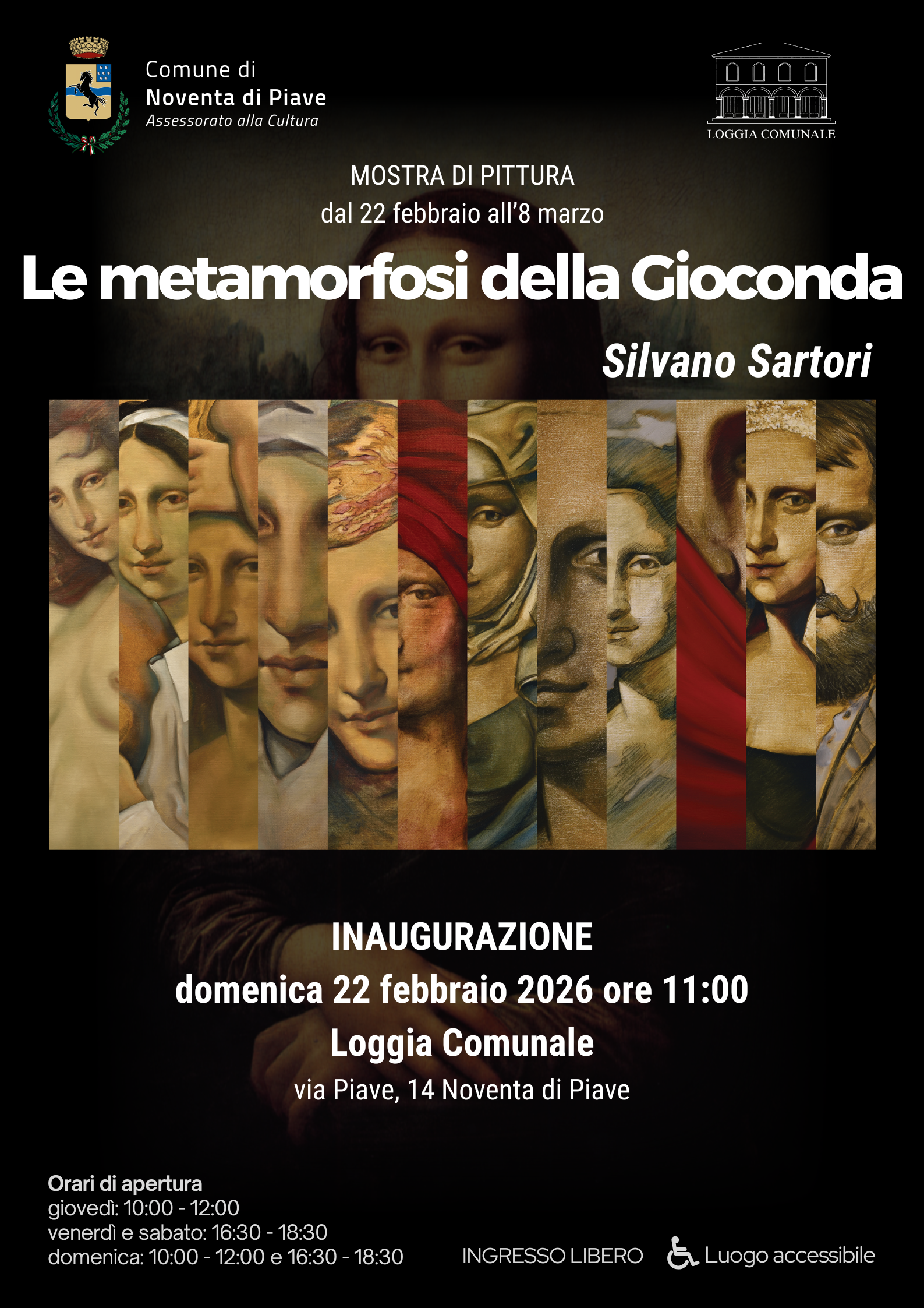 Nell’ambito delle attività espositive della Loggia Comunale, domenica 22 febbraio 2026 alle ore 11:00 si terrà l’inaugurazione della mostra di pittura di Silvano Sartori, dal titolo Le metamorfosi della Gioconda.